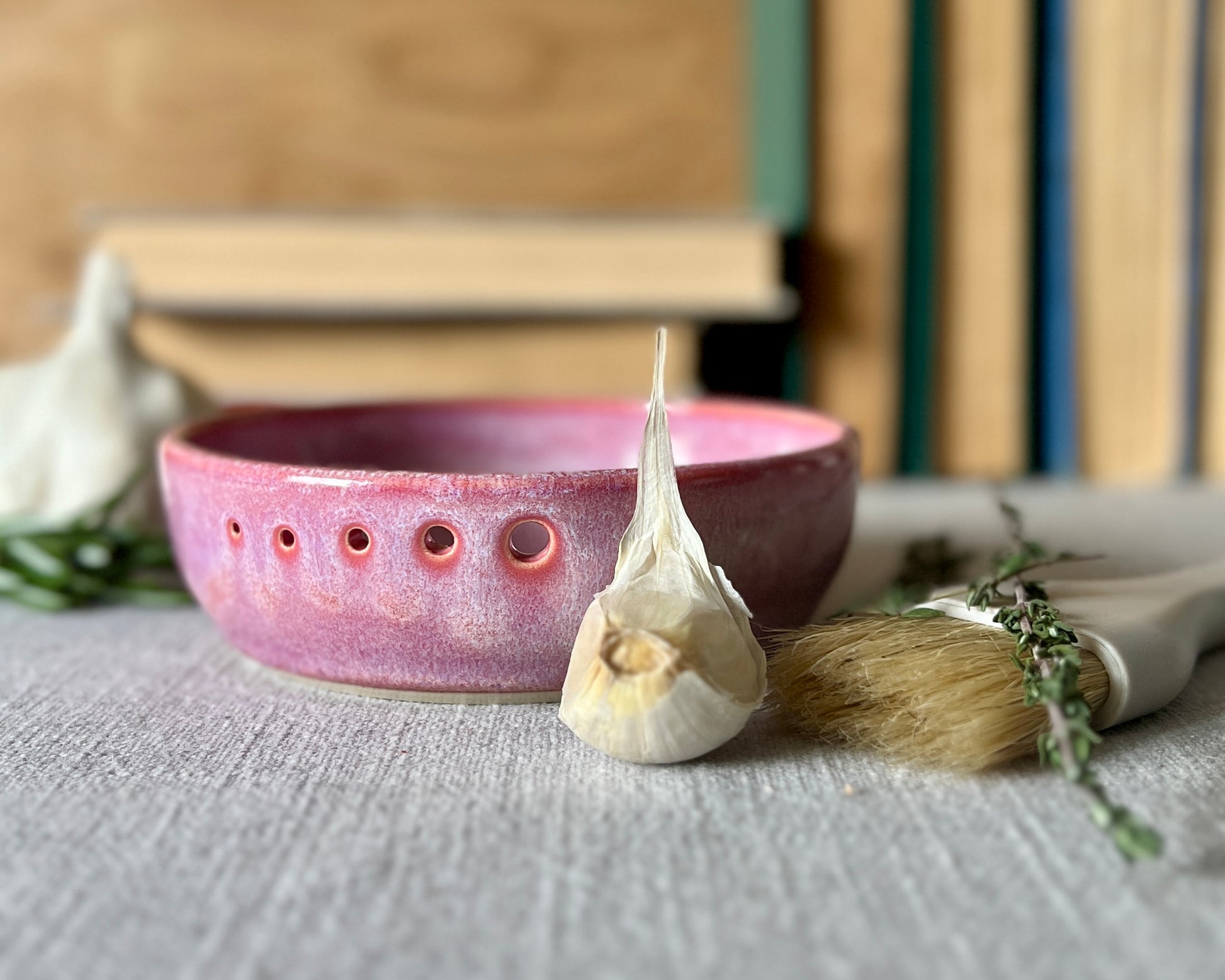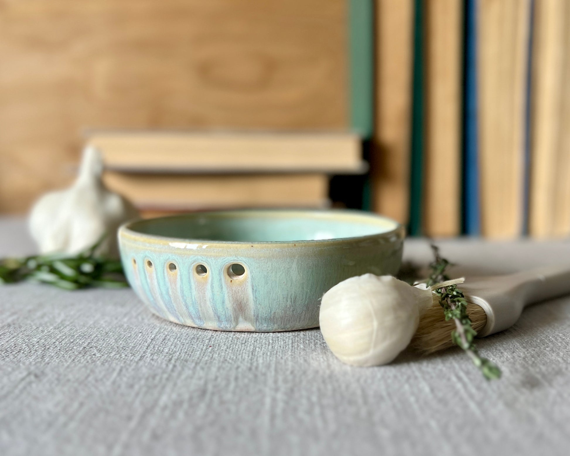 Featuring five size holes for herb stripping and a heavily textured bowl base, this multitasking piece is fast becoming a favorite at in-person markets. It makes quick work of robust and delicate herbs alike, and breaks down a clove of garlic or a finger of ginger in no time.