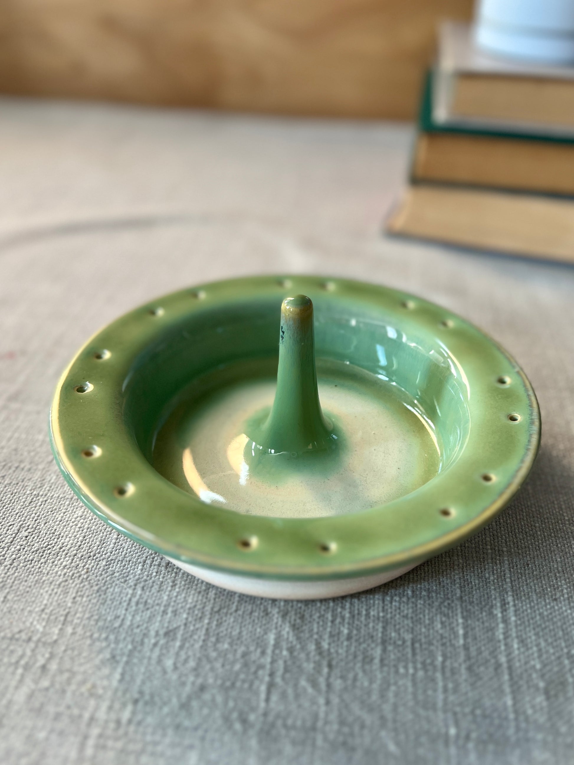 Keep your favorite jewelry organized and easily accessible with this jewelry dish. It has a post for rings, a wide base for necklaces and bracelets, and holes for all types of earrings. Place it on your bedside table, vanity, or by the sink for a colorful and effortless touch.